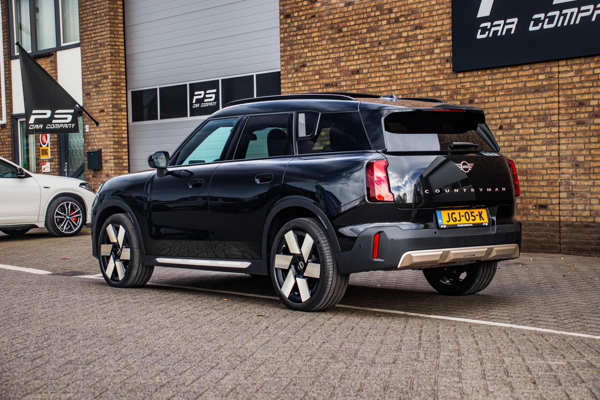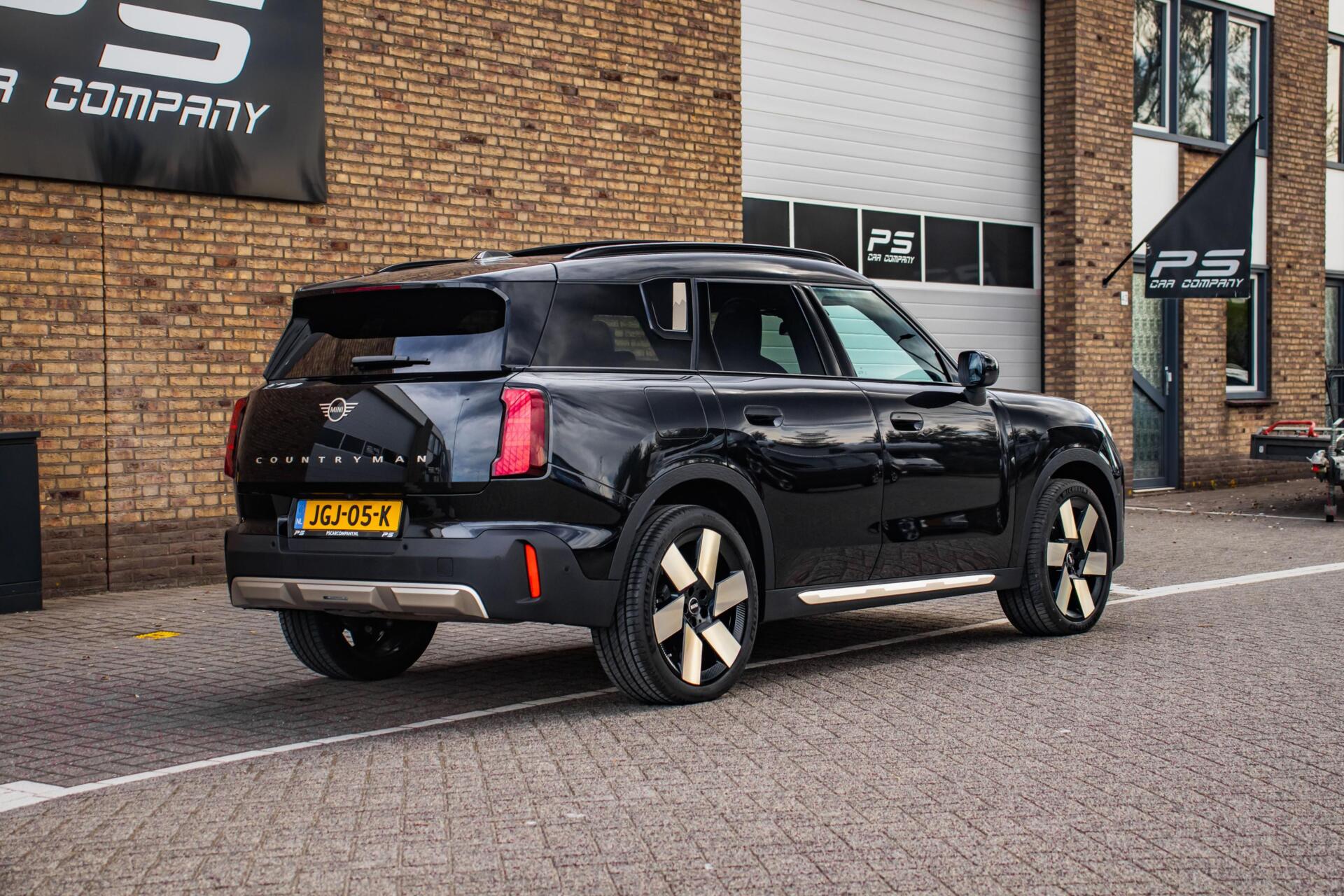 Deze Mini Countryman Favoured XL valt direct op door zijn unieke uitstraling. De combinatie van zwart op zwart met subtiele gouden accenten geeft de auto een stijlvolle, bijna exclusieve uitstraling. Het panoramadak versterkt de ruimtelijke beleving en zorgt voor extra lichtinval, terwijl de krachtige lijnen en sportieve proporties het avontuurlijke karakter van de Countryman benadrukken.