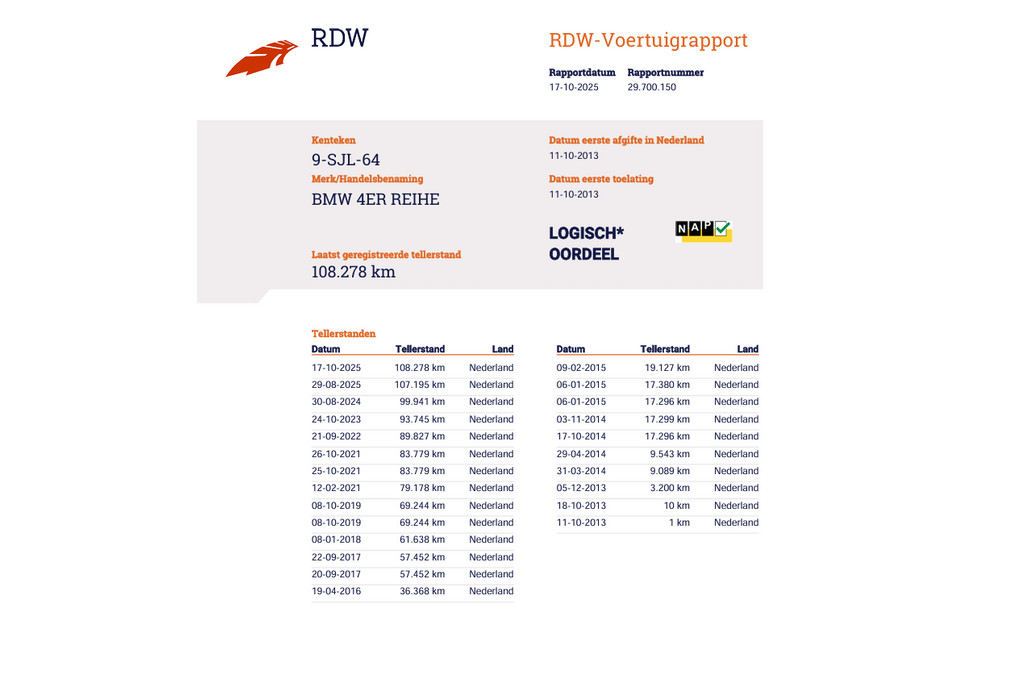 - Onderhoudsboekje aanwezig?