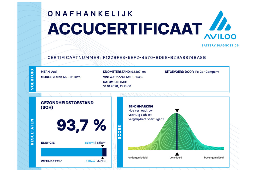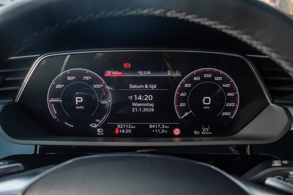 Met een vermogen van 408 pk en maar liefst 644 Nm koppel levert deze e-tron Sportback indrukwekkende prestaties. De quattro vierwielaandrijving zorgt voor optimale grip en stabiliteit onder alle omstandigheden. De hoogspanningsaccu verkeert in uitstekende staat met een State of Health van 94%, wat vertrouwen geeft voor langdurig elektrisch rijplezier.