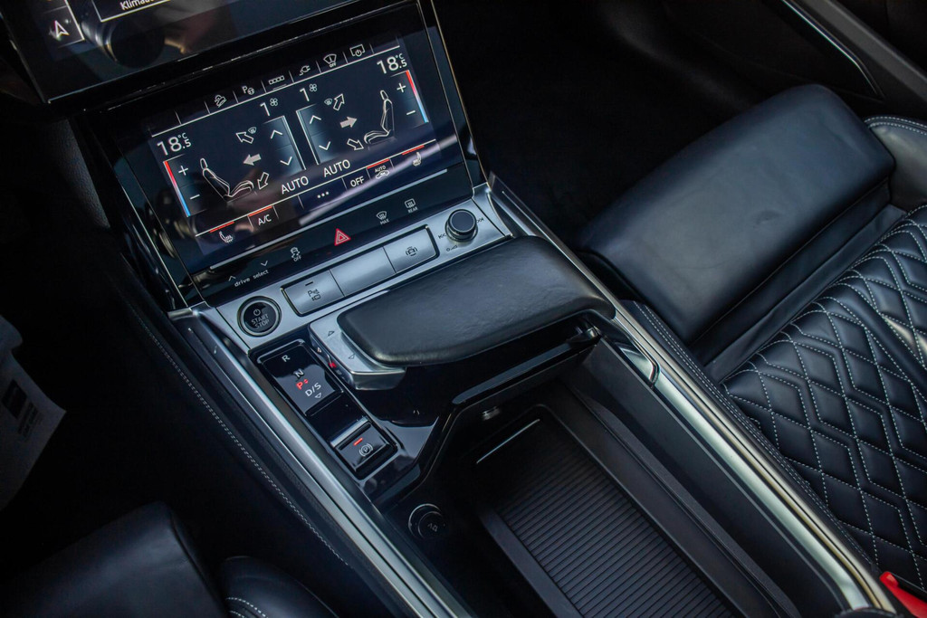 De auto is uitgevoerd in zwart op zwart en staat op imposante 23 inch lichtmetalen velgen, wat zorgt voor een krachtige en exclusieve uitstraling. De S-Line styling geeft de e-tron een sportief karakter, terwijl de Sportback-lijn het geheel extra dynamisch maakt. Dankzij de luchtvering past de auto zich aan verschillende rijomstandigheden aan en blijft het comfort altijd op hoog niveau, ongeacht het wegdek. De elektrisch uitklapbare trekhaak vergroot de praktische inzetbaarheid.