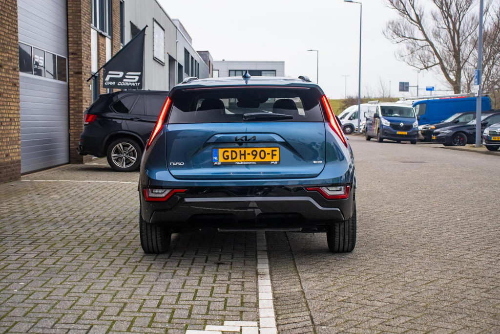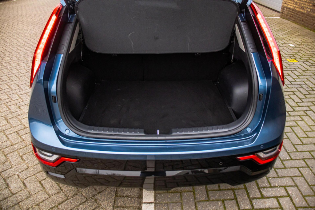 De auto is uitgevoerd in een frisse blauwe kleur met contrasterende zwarte accenten, wat zorgt voor een moderne en sportieve uitstraling. Het panoramadak geeft de Niro een extra luxe uitstraling en zorgt voor veel licht in het interieur. De strakke lijnen en doordachte details maken het geheel tijdloos en verzorgd. Dankzij zijn compacte maar volwassen formaat is de Niro zowel in de stad als op de snelweg prettig in gebruik.