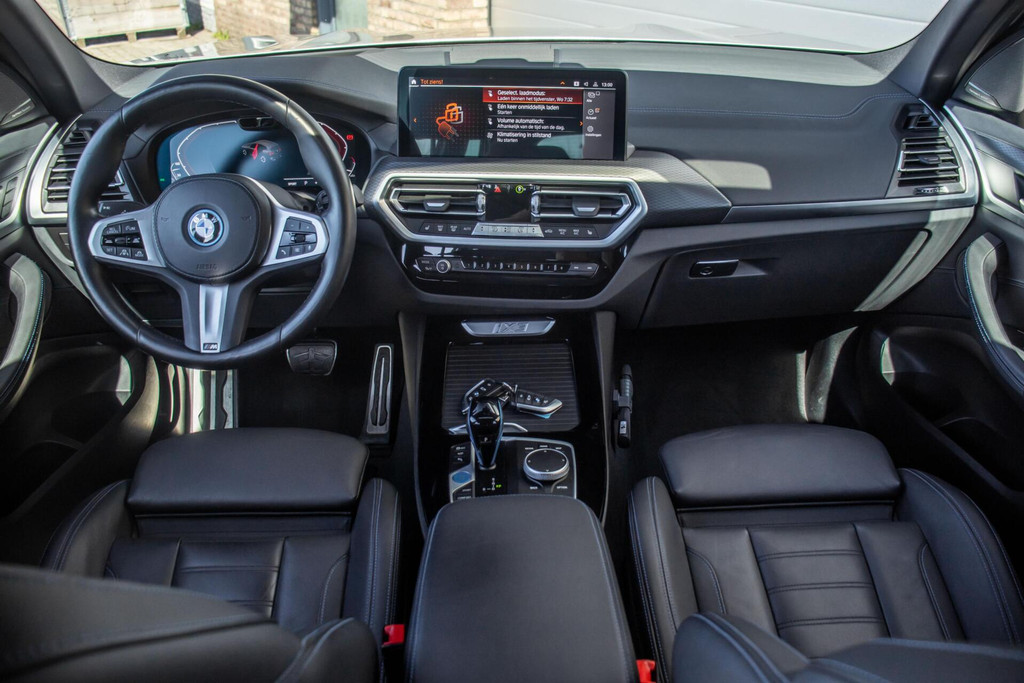 Dit exemplaar is uitgevoerd in de prachtige en chique kleur Kaschmirsilber Metallic. In combinatie met de Shadowline-afwerking (hoogglans zwarte details) en de indrukwekkende 20 inch velgen heeft deze iX3 een gedistingeerde en moderne look. Het grote panoramadak benadrukt de sportieve lijnen, terwijl de aanwezige trekhaak zorgt voor de nodige praktische inzetbaarheid. Extra troef: de auto wordt geleverd inclusief een complete set winterbanden op velg, zodat u in elk seizoen veilig op weg bent.
