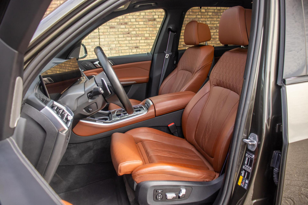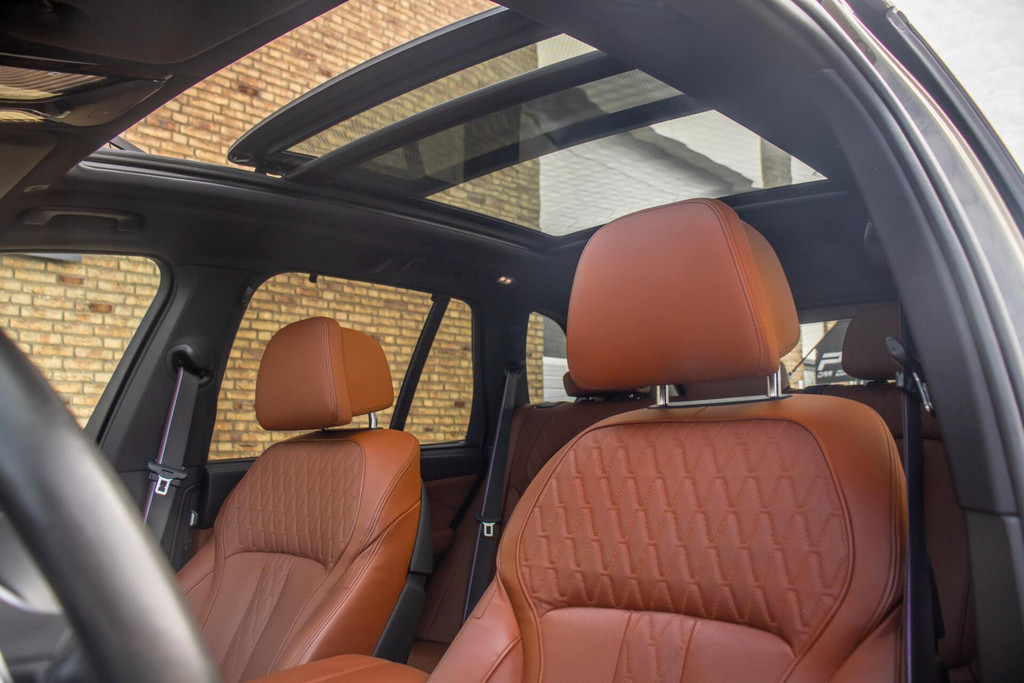 De uitstraling van deze X5 is uniek te noemen. De auto is gespoten in de exclusieve kleur Manhattan Metallic, een tint die kracht en elegantie perfect combineert. Het M-Sport pakket en de imposante 22 inch velgen geven de auto een onmiskenbare 'presence' op de weg. Een bijzonder detail is de Sky Lounge panoramadak; in de avonduren wordt het glas verlicht door duizenden LED-punten, wat zorgt voor een magische sfeer. Voor optimaal gebruiksgemak is de auto bovendien voorzien van een elektrisch uitklapbare trekhaak en Soft-Close deuren die zichzelf geruisloos dichttrekken.