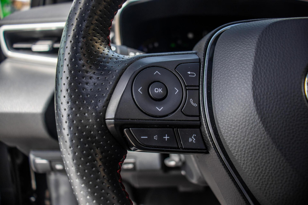 Deze Corolla heeft een uiterst krachtige uitstraling dankzij de "Zwart op Zwart" kleurstelling. Als Black Edition zijn vrijwel alle details in hoogglans zwart uitgevoerd, wat perfect matcht met de sportieve 18 inch GR Sport velgen. De auto is voorzien van geavanceerde Matrix LED-verlichting, die niet alleen zorgt voor een scherpe blik, maar ook voor maximaal zicht zonder tegenleggers te verblinden. Het grote panoramadak maakt het exterieurontwerp compleet en zorgt voor een exclusieve touch.
