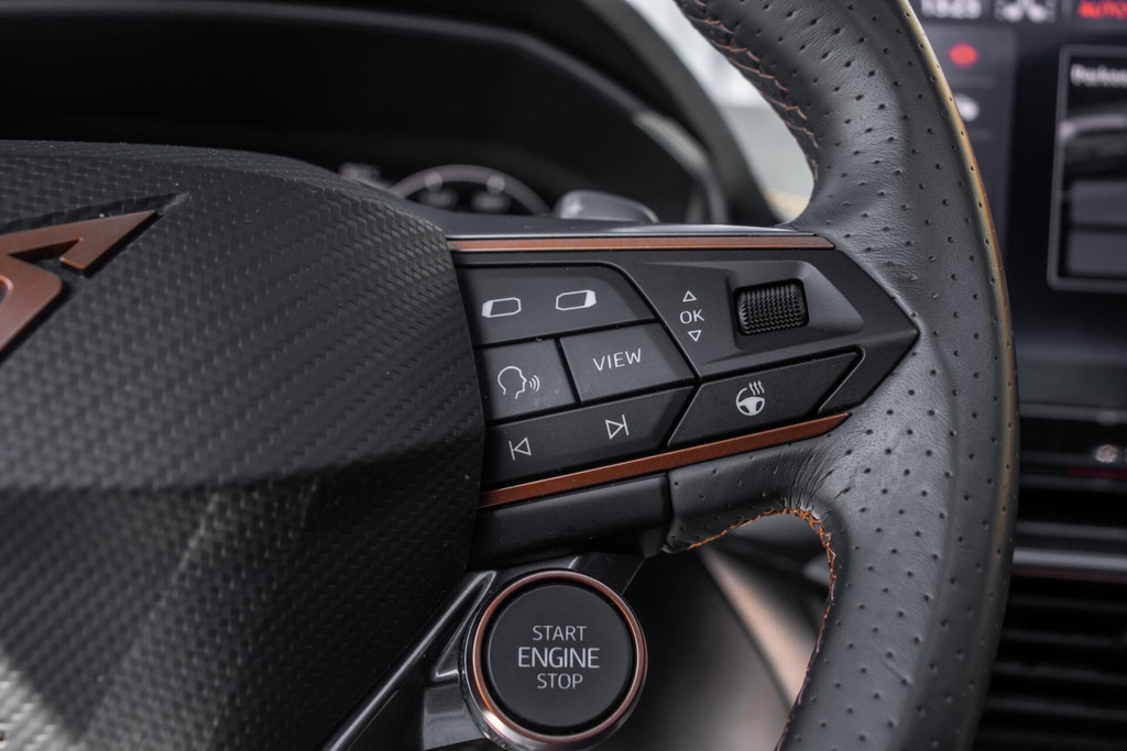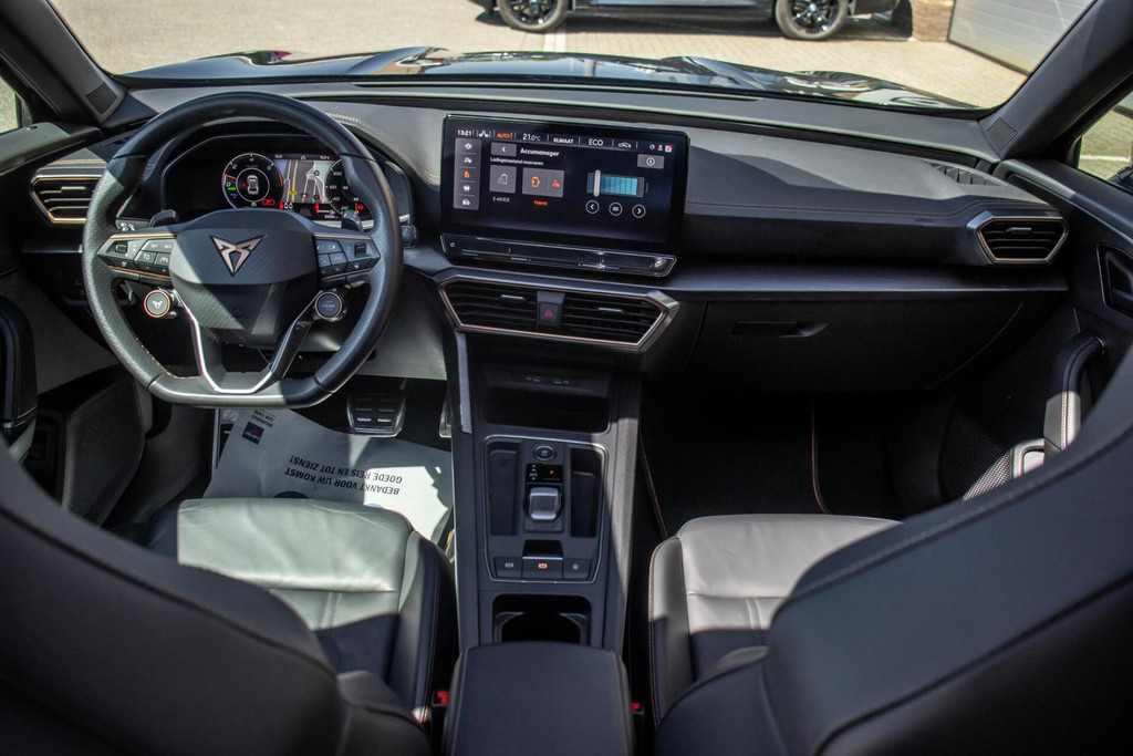 De Formentor is een designicoon, maar de Copper Edition is de meest begeerlijke uitvoering. De auto is uitgevoerd in "Zwart op Zwart", waarbij de kenmerkende koperkleurige CUPRA-details op de velgen en logo's zorgen voor een uniek en exclusief contrast. Het uiterlijk wordt gecompleteerd door de geavanceerde Matrix LED-koplampen en een groot panoramadak dat de sportieve lijnen van de auto extra benadrukt. Dankzij het DCC (Adaptive Chassis Control) kunt u de demping naar wens aanpassen: van comfortabel cruisen tot snaarstrak sturen in de Cupra-modus.