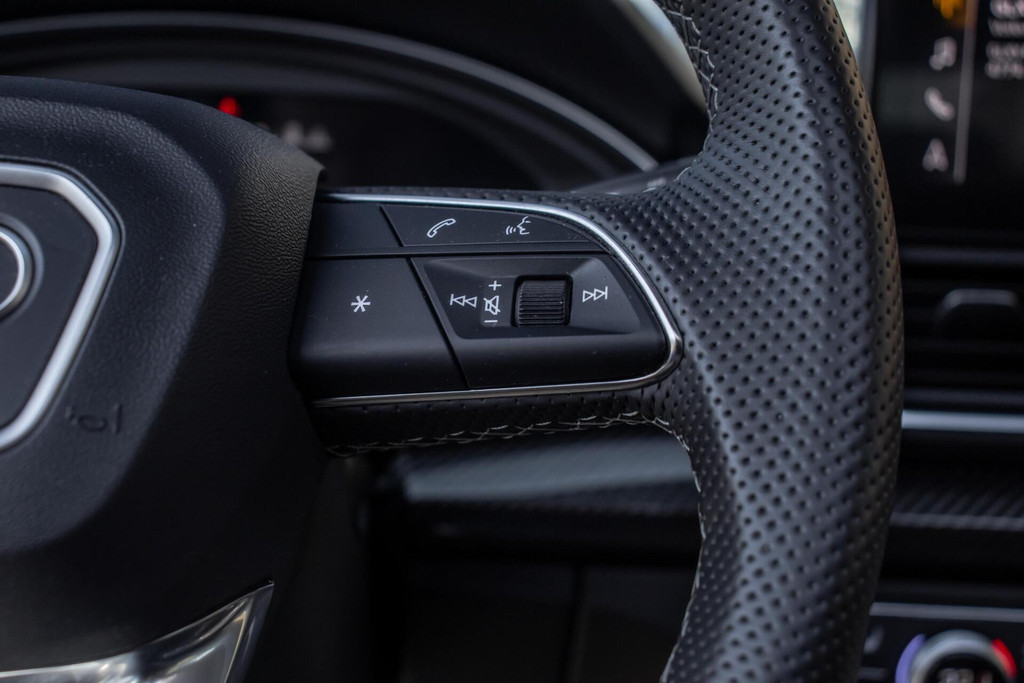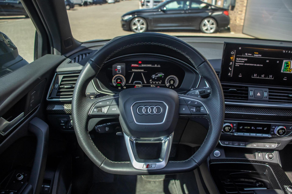 De Sportback-lijn geeft de Q5 een gestroomlijnd en dynamisch profiel. Uitgevoerd in diepzwart en gecombineerd met de indrukwekkende 21 inch lichtmetalen velgen en carbon spiegelkappen, straalt deze Audi pure klasse uit. De opvallende rode remklauwen verraden zijn sportieve ambities. Dankzij het panoramadak geniet u van een lichte cabine, terwijl de luchtvering ervoor zorgt dat de auto altijd de perfecte balans vindt tussen sportiviteit en ongekend comfort.