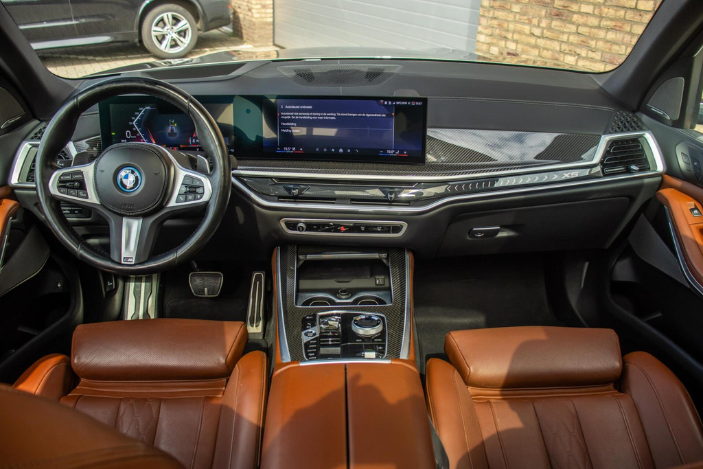 Onder de motorkap schuilt een meesterwerk: een 3.0-liter zescilinder in lijn gecombineerd met een krachtige elektromotor, goed voor een systeemvermogen van 490 pk en 700 Nm koppel. De sprint van 0 naar 100 km/u wordt in een verbluffende 4,8 seconden afgelegd. Ondanks deze brute kracht is de X5 bij consequent laden extreem efficiënt, met een theoretisch hybride-verbruik van slechts 0,8 l op 100 km. Met slechts 39.387 km op de teller is deze machine pas net ingereden.