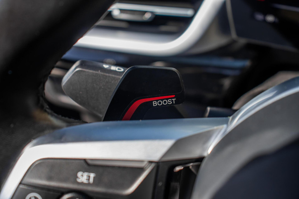 Stap in een cockpit die volledig om de bestuurder is heen gebouwd. De sportstoelen zijn bekleed met een hoogwaardige combinatie van leder en alcantara, wat zorgt voor maximale grip en een premium gevoel. Het interieur zit boordevol high-tech opties: van het indrukwekkende Harman Kardon audiosysteem tot aan de sfeervolle ambientverlichting. Met functies zoals Apple CarPlay, Keyless Entry, Adaptieve Cruise Control (ACC) en elektrisch verstelbare stoelen met memoryfunctie ontbreekt het u aan werkelijk niets. Voor de sportieve rijder is er de boostmodus, waarmee het volledige potentieel van de elektromotoren direct beschikbaar is voor een sensationele acceleratie.